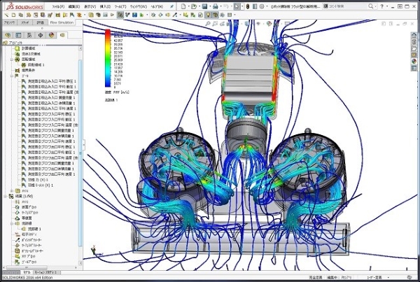 サイクロン部は複雑な形状をそのまま再現してシミュレーションしていますが、サイクロンの発生状況も充分に解析出来ています。