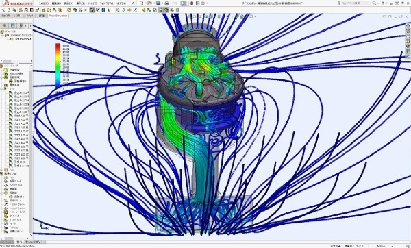 掃除機ゴミポッドサイクロン部でも正確なサイクロン流れをシミュレーションすることが出来ているのが図から分かります。