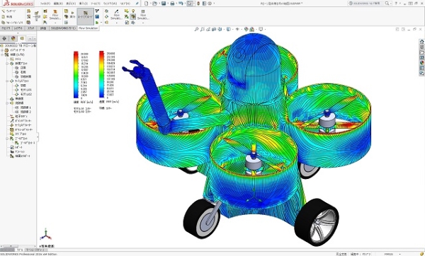この改良設計では以前の性能解析結果をもとに、全備浮揚重量の増大を図るため、ファン直径を300mmだった所を400mmに拡大しました。