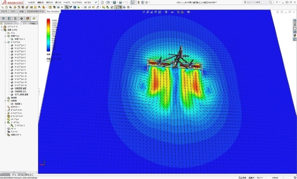 クアッド配置2重反転プロペラ産業用ドローン(簡素型)の飛行性能解析結果です。