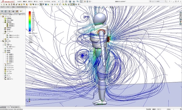 重作業用の空調プロテクターの性能をその空気の流れ解析から見てみました。