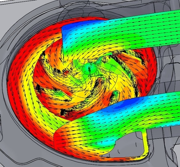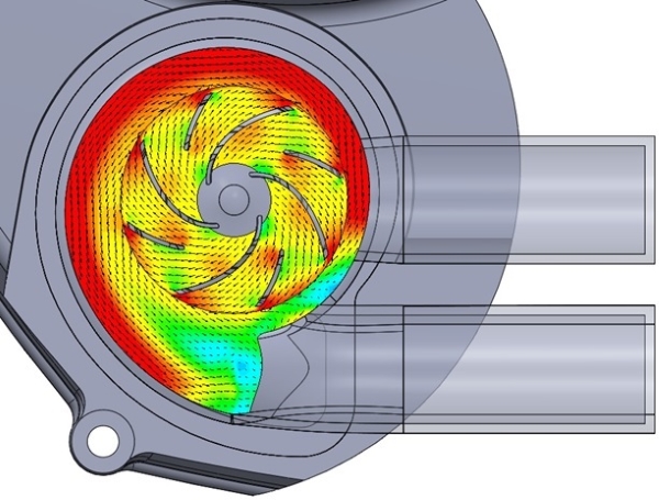 オートバイ用ウォーターポンプの設計と流体解析を行った事例です。