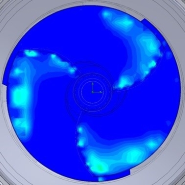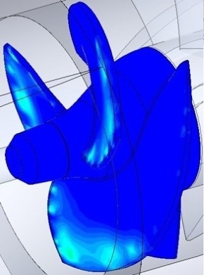 羽根シュラウド側の後退角がもう少し大きければ、更にキャビテーションが減っていたであろうと推測しています。