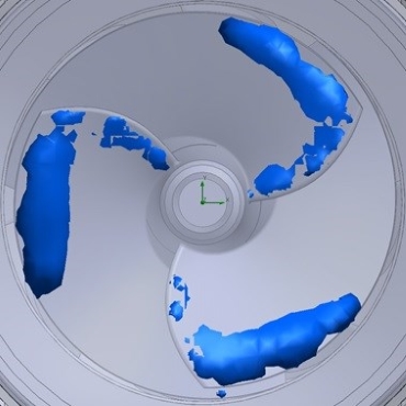 インデューサー羽根シュラウド側の負圧領域にキャビテーションが発生していることがわかります。