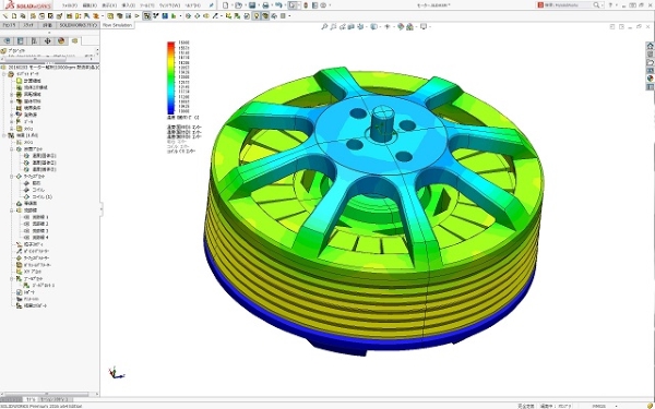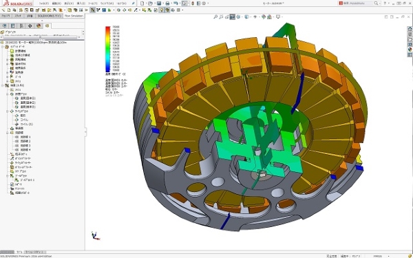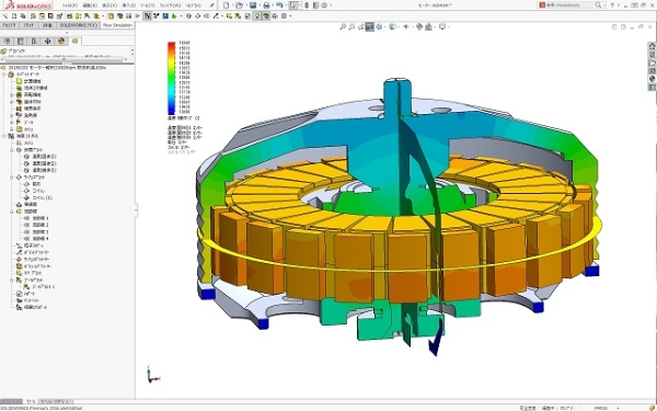 この解析事例モーターは、ブラシレス永久磁石式アウターローターモーターであり、回転数毎分1万回転でモーター出力1kwを出す小型高出力タイプです。