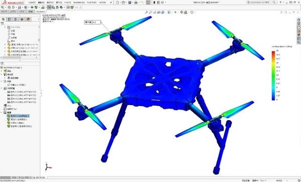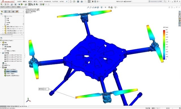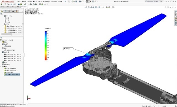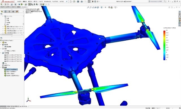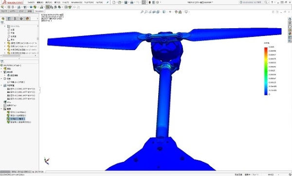 そして、プロペラ根元にある安全率の最小値は200以上あり、機体全体の強度は十分なものとなっています。