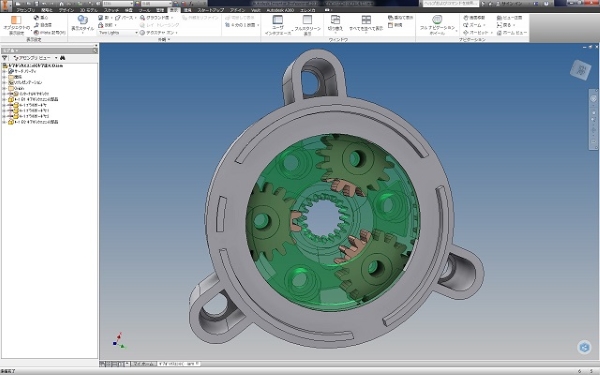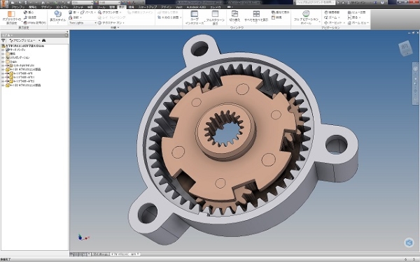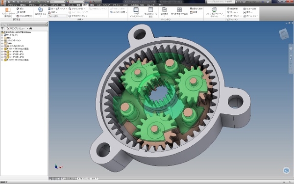 大変小さい樹脂製の遊星減速機の3次元設計例です。 これを多段化して大変に大きな減速比とすることが出来ます。 逆に大きな増速比の増速機にもなります。