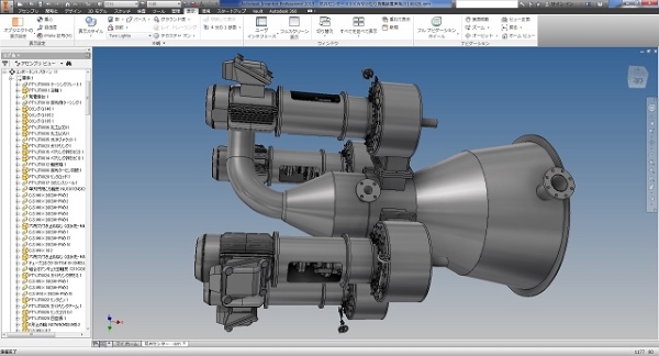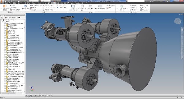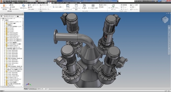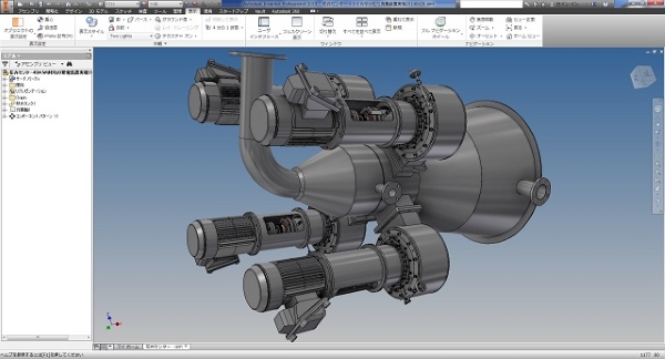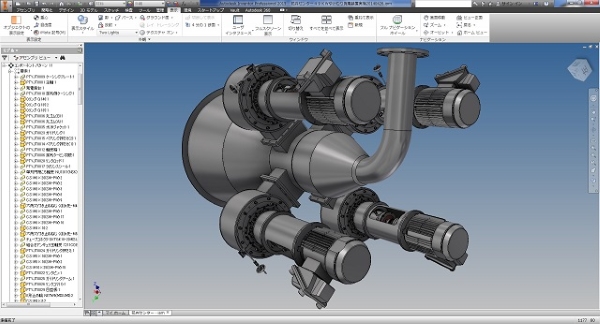 特殊なタービン発電機の設計例です。 立軸タービン4基で構成される、特殊用途発電装置となります。
